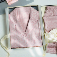 Dames Zomer Ijzen Lange Mouwen Lange Broek Luipaardprint Tweedelige Set High-End Pyjama 'S Als Cadeau Voor Vriendinnen
